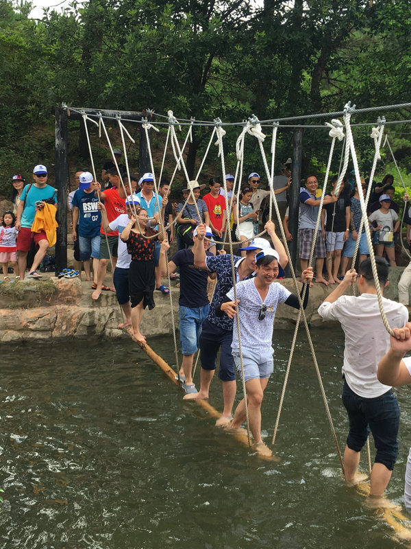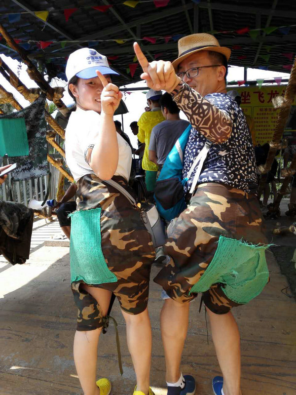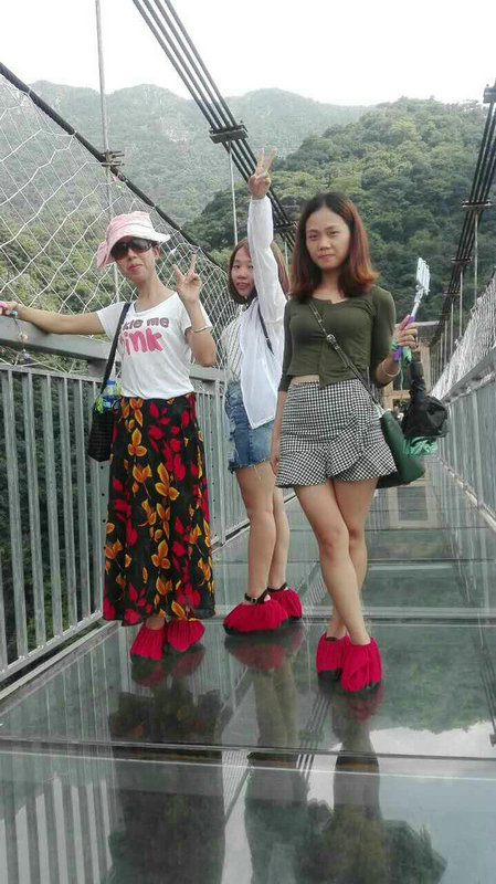 Group photo on the glass bridge of Qingyuan three day tour in 2017